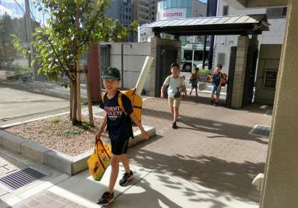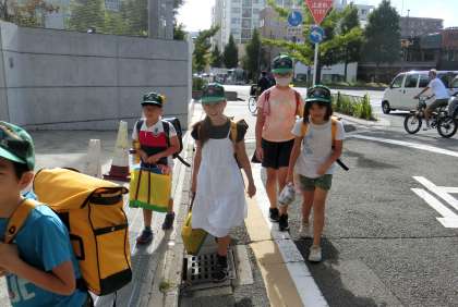 今日から2学期が始まりました。手には、お道具箱や自由研究の大きな荷物を持っての登校です。「おはようございます」と元気のよい声が聞こえました。