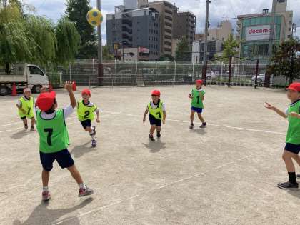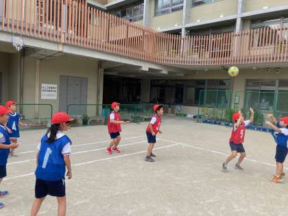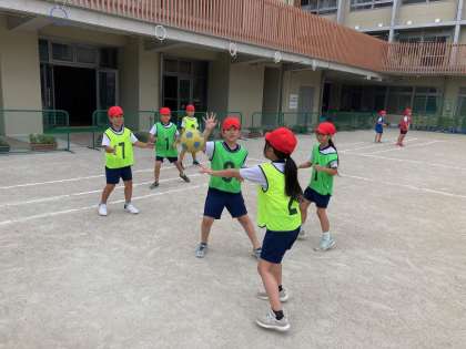試合中少しずつ、『○○さんがあいてるよ!』『○○さんマーク!』互いに声をかけることができ始め、盛り上がった雰囲気で学習が進んでいます。これから熱い試合が繰り広げられるのではなでしょうか。
