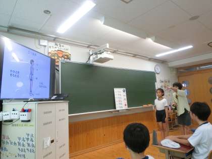 9月の保健指導・身体計測(4年) 公開日 2023/09/05 更新日 2023/09/05 4年生 養護教諭の先生に、よい姿勢とよい姿勢の大切さについてのお話を聞きました。 お話の後は、身体計測をしました。 みんな4月と比べて、大きく成長していました。