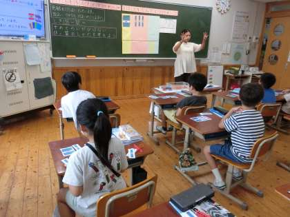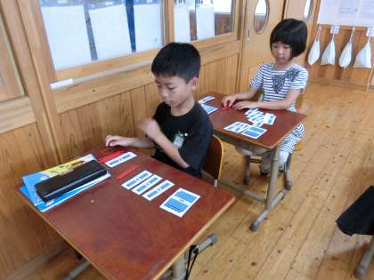 一の位にも十の位にも繰り上がりのあるたし算に挑戦です。数え棒を各自で操作しながら答えを導いています。繰り返し問題を解くことで、少しずつ自信をもって計算できるようになってきています。