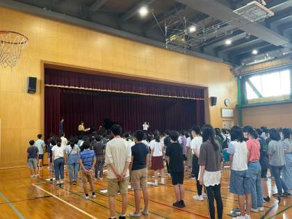 今週初めて3校で合わせましたが、想像以上に音がそろっていて、子どもたちもおどろきを隠せないようでした。