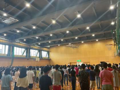 来週20日(水)の合唱祭に向けて、3校での練習が始まりました。当日は校歌・学年合唱曲「ほらね、」・全校合唱曲「翼をください」の3曲を歌います。