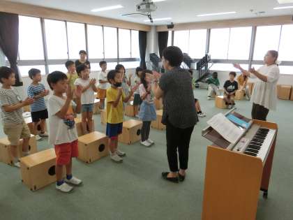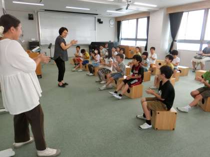 2拍子のリズムをうとう(2年) 公開日 2023/09/21 更新日 2023/09/25 2年生 今日の学習のめあては、「2拍子のリズムを打とう」です。4分音符や8分音符などを学んだ後、実際に手でリズムを打ちます。「タン・ウン・タン・ウン」と「タ・タ・タ・タ・タン・ウン」のグループに分かれて打ったり、重なるところはあるかを確かめたりしながら、楽しく学習しました。