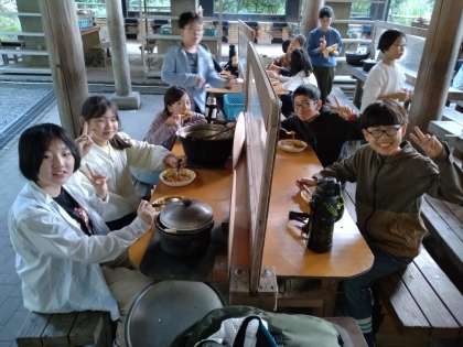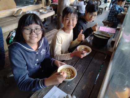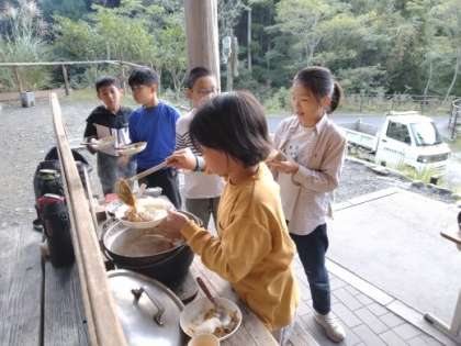自分たちで作ったカレーは、格別です。一口食べて、思わず笑顔になりました。おかわりする人もたくさんいました。