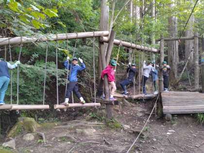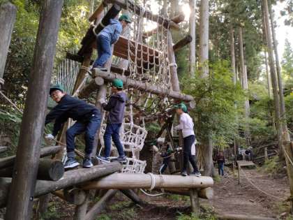 丸太やロープを組んで作られたコースは迫力満点。