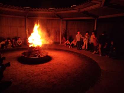 そしてキャンプファイヤーのプログラムは、この日のために、レクリェーション係を中心に準備をしてきました。歌を歌ったり、スタンツをしたりするのを心から楽しむにはお互いの[協力]と[信頼]が必要になります。