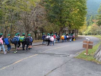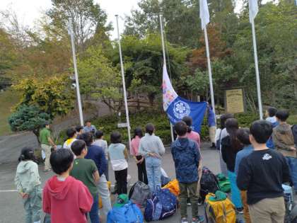 花背山の家 28 公開日 2023/10/04 更新日 2023/10/04 5年生 花背での最後のプログラム、退所式を終えました。 三日間の活動での成長をかみしめながら学校旗と学年旗を下ろしました。 家に着くまでが宿泊学習、ということで、道中、解散式でも気を抜かずに過ごしたいと思います。 ※ほぼ定刻通り出発し、帰路についています。