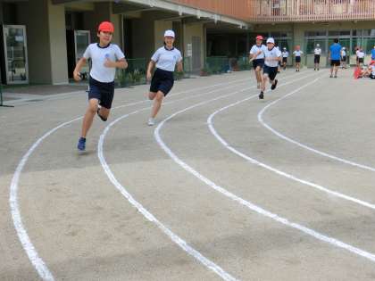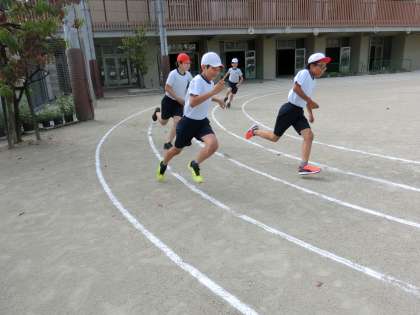 久しぶりの小学校運動場での体育です。大きくなった身体では、小回りするのが難しくなってきたようですが、カーブの感触を確かめながら走りました。本番では、練習を生かして力いっぱいに走ります。