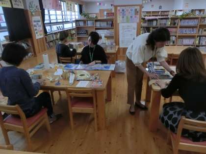 子どもたちのことや好きな本の話など、会話も盛り上がりながら作業を行っていました。
