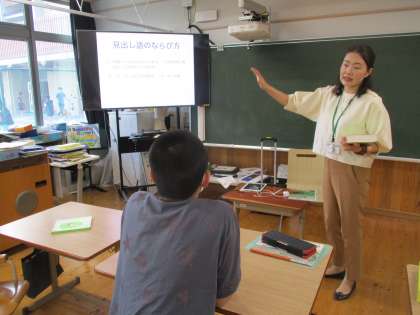 国語辞典の使い方を学ぼう(3組) 公開日 2023/10/11 更新日 2023/10/11 3組 6年生は、学校司書の先生と一緒に、国語辞典の使い方の学習をしました。 国語辞典は、➀言葉の意味、➁言葉の使い方、➂漢字での書きあらわし方などを知りたいときに使うことを学びました。 言葉が50音順に並んでいることも学びました。 「あい」と「あか」はどちらが先に出てくるのかな?と問われ、実際に実際に辞典を捲って考えていました。 使いこなせるように、色々な言葉を引いてみたいです。