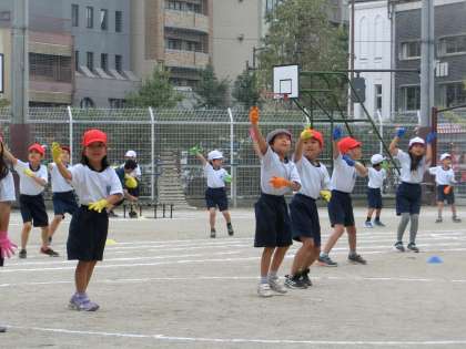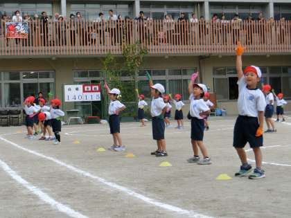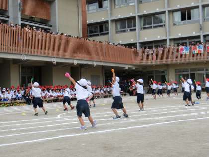 1年生は、カラフルな手袋をつけて踊りました。学校でもお家でも一生懸命に練習してきたダンスです。たくさんの人に見てもらって、とても楽しそうに踊っている姿が印象的でした。それぞれが好きなポーズを取るところは、特にかっこよかったです。