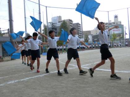 練習の時から常に本番を意識して、集中して取り組んできた6年生。フラッグをみんなで合わせて振る姿、それが合わさった時の音。大変迫力がありました。