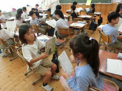 国語科の時間にアーノルド=リーベルさんの「お手紙」のお話を学習しました。がまくんとかえるくん、どちらも魅力的なキャラクターです。二人が親友で、互いを思い合いながら進むお話で、みんな「お手紙」が大好きになりました。好きな場面を1年生や3年生に音読を発表するためにがんばって練習しています。