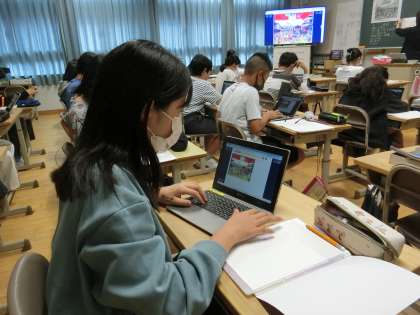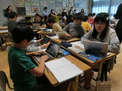 授業参観1 公開日 2023/11/10 更新日 2023/11/10 学校の様子 7日に6年生の授業参観を行いました。子どもたちはいつも通りめあてをもって意欲的に学習に取り組んでいました。ICT機器の扱いも手慣れたもので、手元にある資料を視点にそって読み取り、気付いたことや考えたことを発表することができていました。