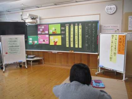 ここでの学習と生活単元学習の町探検でのインタビューの経験を結びつけて、子どもたちのコミュニケーションにおける実践的な力を育めたらと考えています。