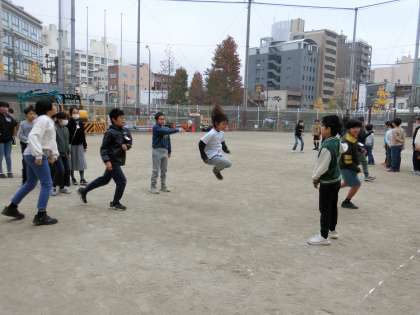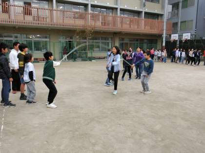 12月の体力アップタイム 公開日 2023/12/09 更新日 2023/12/09 学校の様子 12月の体力アップタイムは、大縄跳びです。朝の寒さに負けず、みんな元気いっぱいに取り組んでいます。今までにも繰り返し行っているので、高学年の跳ぶスピードは、とても速いです。日に日に上がっています。クラスのチームワークのよさが感じられます。