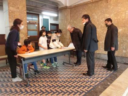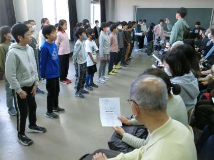 8日(金)に元銅駝美術工芸高校校舎で、「御所東高瀬川舟まつり」を行いました。保護者や地域の方々に来ていただいて、子どもたちは大喜びでした。受付では、来校された方にしおりを渡したり、会場へ誘導したりしました。全体会では、進行役が会を進め、自分たちが作った「高瀬川の歌」を披露しました。