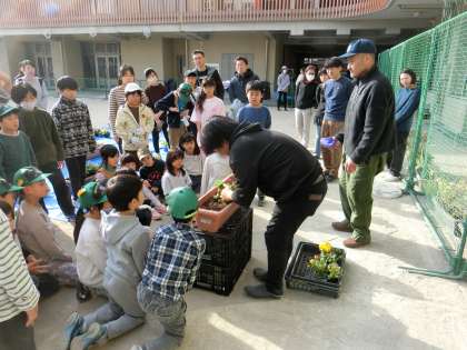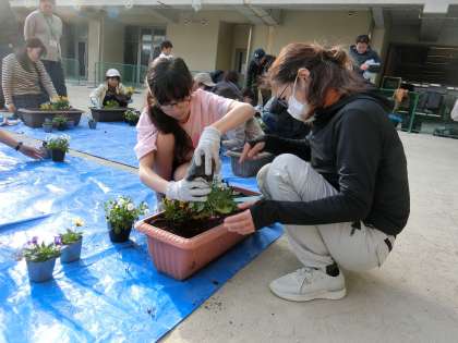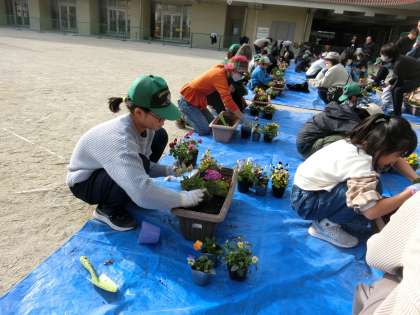 開校前から取り組んでいる「花いっぱい 御所東」を行いました。この日は、お天気で大変暖かで、気持ちよく活動することができました。