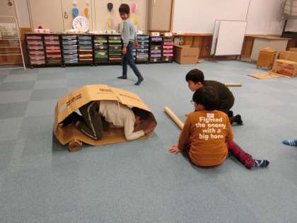 段ボールに入ってみると!?(2年)