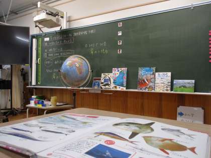 取組のはじめに、「世界」と聞いてどんなことをイメージするのかを交流するところから始めました。子どもたちからは自分の身近にあるものを話してくれました。地球儀を使いながら、地球には陸地と海があること。実はみんなが暮らしている陸地よりも海のほうが広いこと。海の中はまだまだ人間が分からないこともたくさんあること。そんな話をしながら今まで考えてこなかった「世界」についてイメージを広げる時間をもちました。