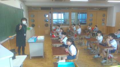 16日(火)に今年度最後の身体計測がありました。計測前に養護教諭の小原先生から『薬について』のお話がありました。なぜ薬を飲むのか、薬のはたらきなどを教えてもらい、自分が処方された薬を正しく服用することの大切さや服用する目的について知ることができました。薬を飲む時の適切な水の量が、コップ一杯分ということを教えてもらった時には、とても驚いた様子でした。