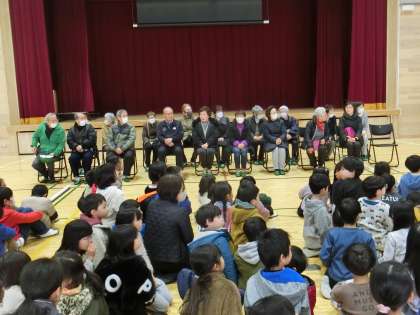 おはよう・お帰り当番のみなさんありがとうの会1 公開日 2024/01/27 更新日 2024/01/27 学校の様子 日頃から子どもたちの登下校を見守ってくださっている地域の見守り隊のみなさまに学校へお越しいただき、感謝の気持ちを伝える会を開きました。 児童会の司会で、温かい雰囲気のまま会は進み、児童、PTAさんからそれぞれ感謝の気持ちを込めたプレゼントを贈りました。