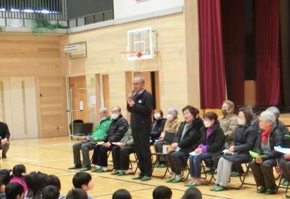 今年度は、ようやく全校児童と見守り隊の方とが対面で会を開くことができました。
