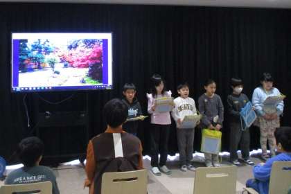 総合みらいの学習で、これまで探究してきた「京都のよさ」を伝えるために、校区にある魅力ある場所を巡るガイドツアーを計画しています。今回の学習では、旅行会社に勤めておられるガイドの方に来ていただき、それぞれのグループが計画しているガイドツアーで、十分に京都の魅力を伝えることができているかを聞いていただきました。子どもたちは、自分たちがタブレットで撮影した写真を見せながら、その場所のよさや体感できる魅力などを伝えるました。発表の後には、どのようなことを意識して伝えればよいか、自分たちが感じたことを相手に伝える大切さなど、アドバイスをたくさんいただきました。子どもたちは、そのアドバイスを生かして自分たちのツアーをよりよいものにしていきたいと意欲を高めていました。
