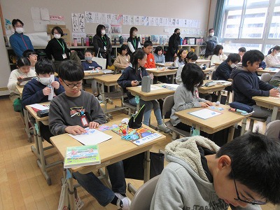 2日目は、自分たちで中学校に登校しました。教室に着くと「ドキドキした」「迷わなくてよかった」と朝から少し冒険したような気分だったようでした。午前中は参観授業。たくさんの保護者の方に見守られながら、中学校の先生の授業を体験しました。いつもと違う雰囲気の中に「中学校では…」という言葉も出てきて、少し気持ちが引き締まったようでした。この2日間、多くの方の協力のもと気持ちよく過ごせたのだということを実感していました。6年生への準備もしながら、これからの学校生活を頑張ろうと思えた時間になりました。
