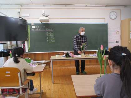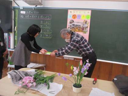 1学期・2学期と来ていただきましたが、今回が本年度最後の機会となります。いつも季節のお花や季節の行事を意識され、お花に触れることで子どもたちがお花の魅力を感じられるように取り組んでくださっています。子どもたちは今日を迎えるにあたり、松本先生への感謝の気持ちを込めて手紙を書きました。授業の最後には手紙を発表し、それをまとめた大きな感謝状をお渡ししました。一生懸命書いた手紙を喜んでもらえて、子どもたちも嬉しそうにしていました。