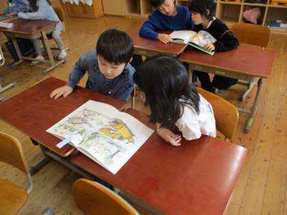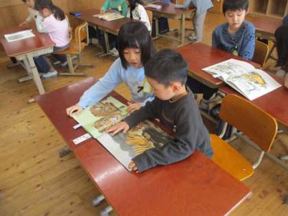 教科書の「ずうっと、ずっと、大すきだよ」というお話でたくさん話し合ったので、今度は自分の選んだ本で「いいな」を伝えました。