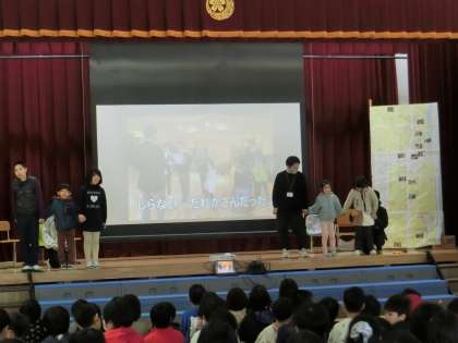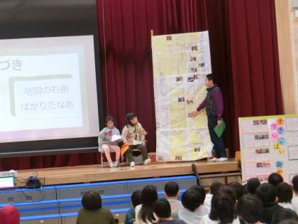 3組では、町たんけんをして見つけた「御所東のすてき」を発表しました。見つけたお店について詳しく紹介したり、地図に写真を貼ったりして紹介しました。自分のことばで丁寧に伝える姿がかっこよかったです。手をつないで歌った「手をつなごう」からは、3組のみんなの仲良しさがあふれていました。