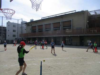 体育科:ベースボール(3組) 公開日 2024/03/13 更新日 2024/03/13 3組 5年生の体育科の学習では「ベースボール」に取り組んでいます。「ボールをよく見てバットを振る」「ボール飛んでくる場所を考えて守備位置を修正する」「走るか止まるか判断する」など、気づいたことをアドバイスし合いながら”熱く”試合を楽しむ姿が見られています。 春に向かって晴れと雨が交互にやってくる季節ですが、太陽が顔を出した明るいグラウンドには子ども達の元気な声と熱気が広がっていました。
