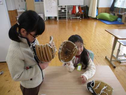 あのグローブが3組にやってきた(3組) 公開日 2024/03/13 更新日 2024/03/13 3組 ニュースにもなり話題になっているグローブが御所東小学校にもやってきています。全校のクラスで順番に回しているのですが、ついに3組にもやってきました。 子どもたちは「うわあ。本当にやってきた」「ニュースで見たやつや」「さわってみたい」と、とても喜んでいました。実際に手にはめてみている様子が微笑ましかったです。 これを使ってまたみんなで体を動かして遊びましょう。