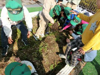 畑のお手入れをしたよ(2年) 公開日 2024/03/19 更新日 2024/03/19 2年生 この一年間お世話になった屋上の畑をみんなでお手入れしました。草を抜いたり、スコップで土を耕したりしました。次に使う学年が気持ちよく使えるように、そしておいしい野菜やきれいな花が育つようにという願いを込めて作業を進めていました。