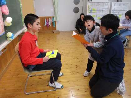 「いつもの教室を特別にしよう!」と、かざりやプログラムを自分たちで作りました。モルックで白熱して遊んだり、大好きな歌を歌ったり、そして、この日のために書いたお手紙を発表しました。また、関わりの深い先生方を招き、メッセージをいただきました。