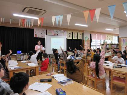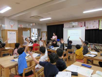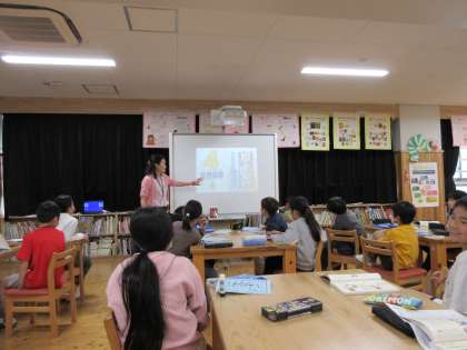 国語科「図書館を使いこなそう」の学習で、学校司書の先生に読書センターの使い方についてお話をしてもらいました。