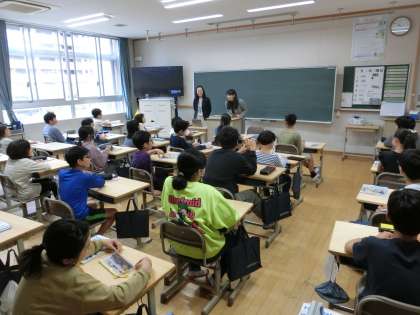 英語の学習 公開日 2024/04/16 更新日 2024/04/16 6年生 6年生 中学校の先生の英語の学習です。 少し、緊張した様子でしたが、徐々に慣れてきたようで、 ニコニコ楽しそうに学習をしていました。 次回からも楽しみです。
