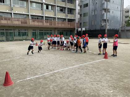 体育科「リレー」(4年) 公開日 2024/05/08 更新日 2024/05/08 4年生 体育科「リレー」の学習をしました。 タイムを縮めるためには、どうしたらいいか。 バトンの渡し方を工夫したり、声をかけてバトンを渡したり… チームの仲間と協力をしながら取り組むことができました。