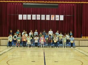 2年生〜6年生のお兄さんお姉さんに入学をお祝いしてもらって、1年生はとてもうれしそうでした。