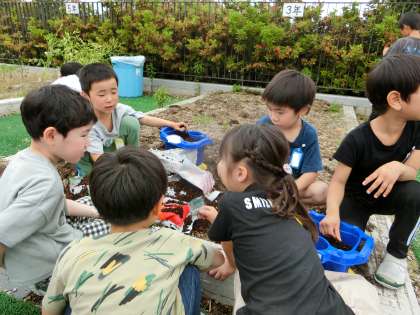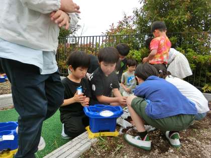 生活科「あさがおの種をまいたよ 1」(1年生) 公開日 2024/05/15 更新日 2024/05/15 1年生 2年生と一緒にあさがおの種をまきました。 屋上の学校園で土を用意しました 「たっぷり土を入れるんだよ。」 と教えてくれました。
