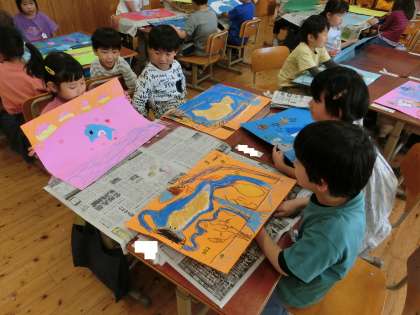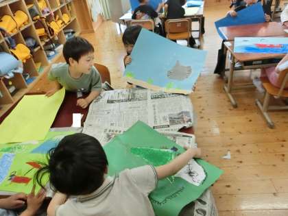 図画工作科「やぶいたかたちからうまれたよ 2」(1年生) 公開日 2024/05/20 更新日 2024/05/20 1年生 図画工作科で描いた絵の鑑賞会をしました。 自分の描いた絵を見てもらって、 友達に題名を付けてもらっています。 自分でも思いもしなかった見方をしてもらえて、 なんだかうれしそうです。