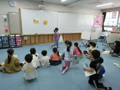 国語科「はなのみち 1」(1年生) 公開日 2024/05/20 更新日 2024/05/20 1年生 国語科では「はなのみち」の学習をしています。 くまさんがりすさんのところに行く途中で、袋の中身を落としてしまう様子を、劇化を通して想像しました。 実際にやってみることで、物語をより具体的に想像できました。