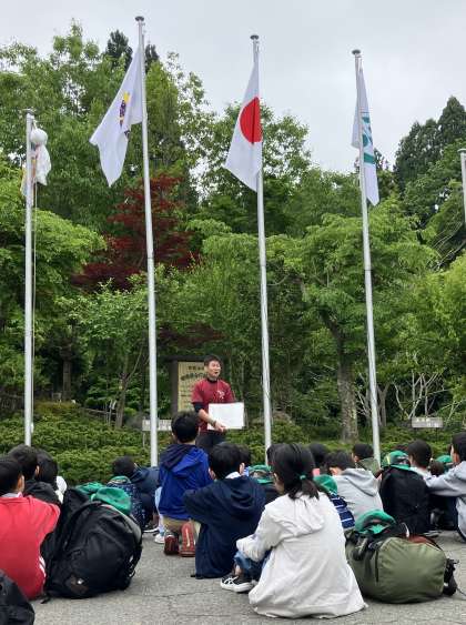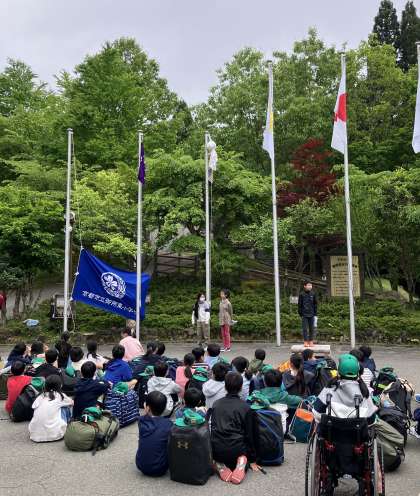 山の家 入所式 公開日 2024/05/21 更新日 2024/05/21 学校の様子 5年生 花背山の家に到着しました。 皆、元気にしています。 入所式をおこないました。あいさつや校歌を所員さんに褒めていただき、子どもたち嬉しそうでした。