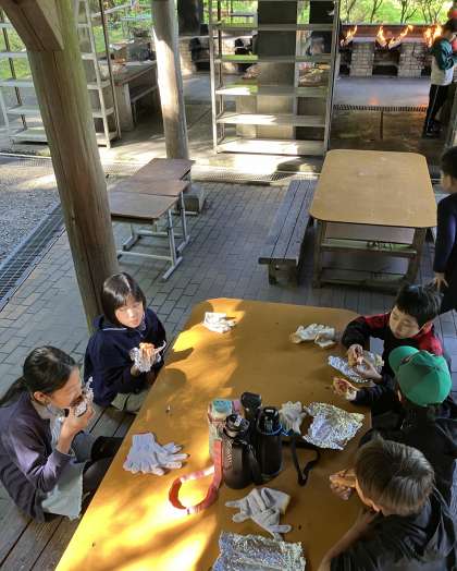 山の家2日目 パックドッグ2 公開日 2024/05/22 更新日 2024/05/22 学校の様子 パックドッグが出来上がりました。 一人2つをあっという間に食べちゃいました。 美味しかったようです。 今日の活動にむけ、エネルギー満タンです。