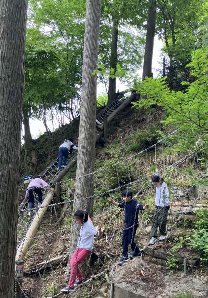 山の家2日目 冒険の森 公開日 2024/05/22 更新日 2024/05/22 学校の様子 子どもたちが楽しみにしていた冒険の森のアスレチック。果敢に挑戦していました。 大型のアスレチック体験。楽しむことができました。