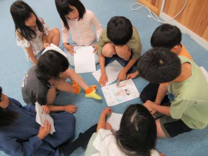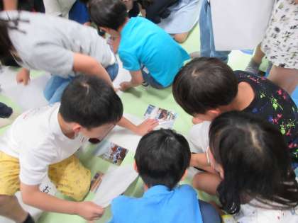 生活科の学習で、まちたんけんに行って気になったことを交流しました。「きれいな飾りが見えて、中がどうなっているのか気になったよ。」「お花がたくさんあったよ。どんなお花があるのか気になるな。」とグループで紹介していました。みんなで集めた「気になる」をつぎのたんけんで探ってきたいと思います。