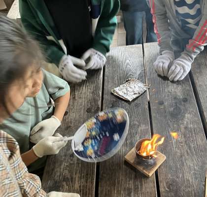 山の家3日目 火おこし体験 公開日 2024/05/23 更新日 2024/05/23 学校の様子 子どもたち火おこし体験に挑戦しています。 なかなか火の粉ができず、苦労していましたが、 心を一つに頑張り、火をおこすことができました。歓声があがっていました。