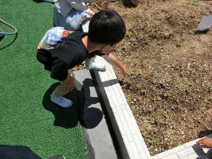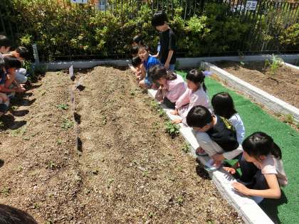 大雨の後だったので心配していましたが、ちゃんと芽が出ているので子ども達は大喜びでした。