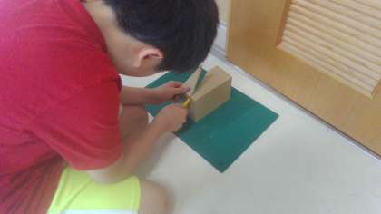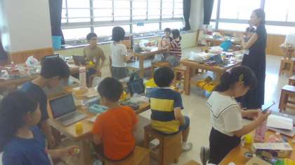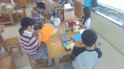 身の回りにある箱や牛乳パックを利用し,ゴー!ゴー!ドリームカーに取り組んでいます。